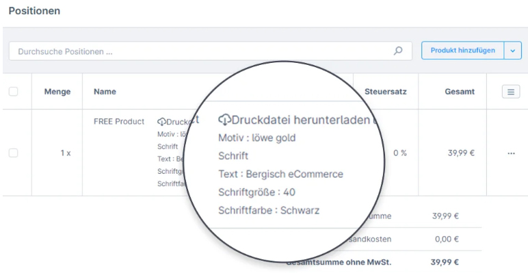 Du hast direkt die Möglichkeit, den Druck auf dem Produkt zu platzieren und sich die Vorschau genau anzusehen.